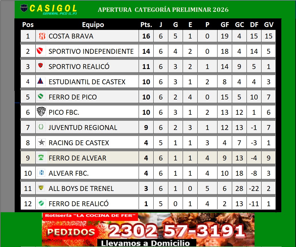 COSTA BRAVA vs. FERRO DE PICO (Domingo 26 - 14:00hs. )