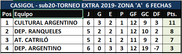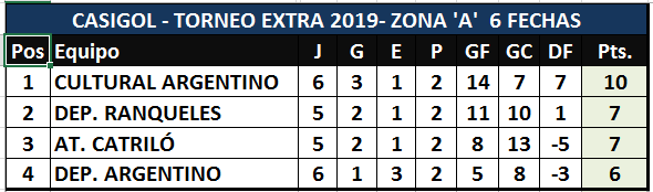 NOTA: EN EL DÍA DE MAÑANA SE SORTEARÁN LOS CRUCES DE SEMIFINAL.  EL TRIBUNAL DE DISCIPLINAS DETERMINARÁ LO QUE SUCEDERÁ CON EL PARTIDO  DE CATEGORÍA 99,  SUSPENDIDO ENTRE AT. CATRILÓ Y DEP. RANQUELES. SI LE DAN EL PARTIDO GANADO POR UNO A CERO A CATRILÓ EL EQUIPO DE HECTOR LUJÁN SERÁ EL CUARTO CLASIFICADO PARA SEMIFINALES