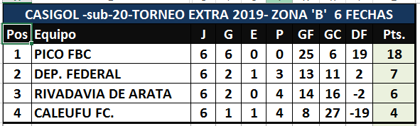 CLASIFICADOS PICO FBC Y RIVADAVIA COMO MEJOR SEGUNDO