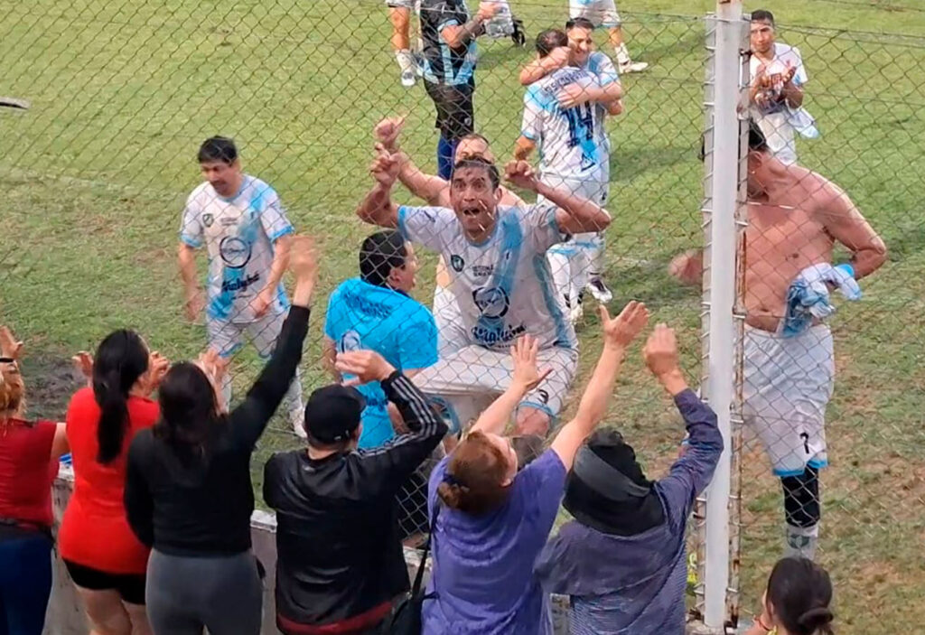 EL FESTEJO VISITANTE:  Gran alegría se desató entre los jugadores del conjunto de Atlético Concarán, luego de la victoria que lo depositó en la final.