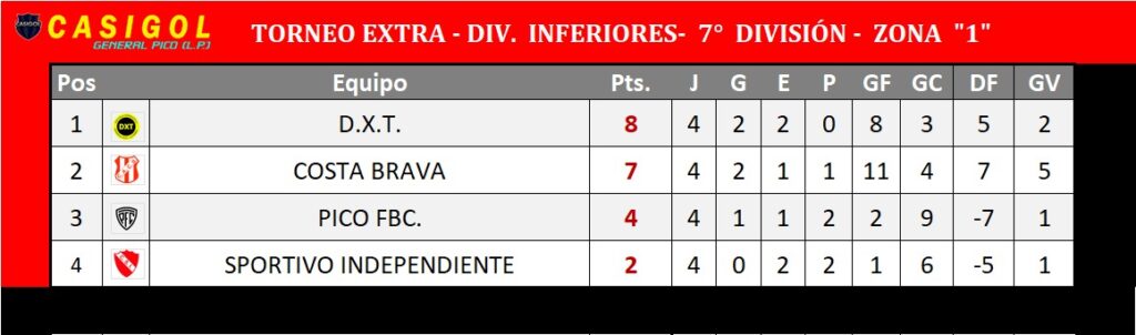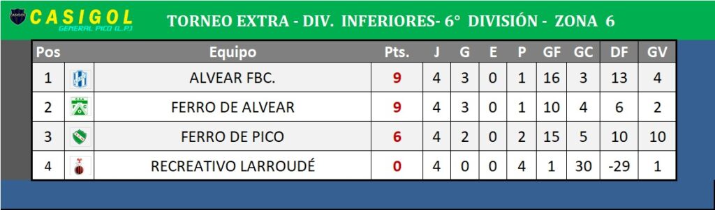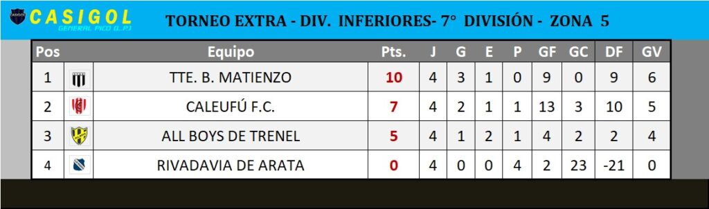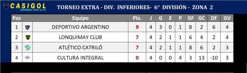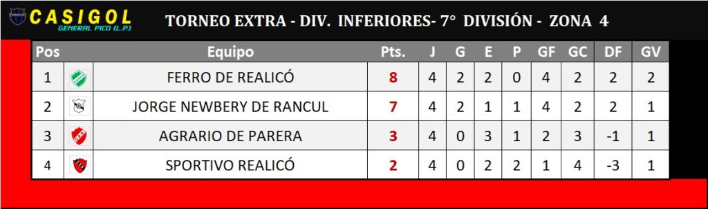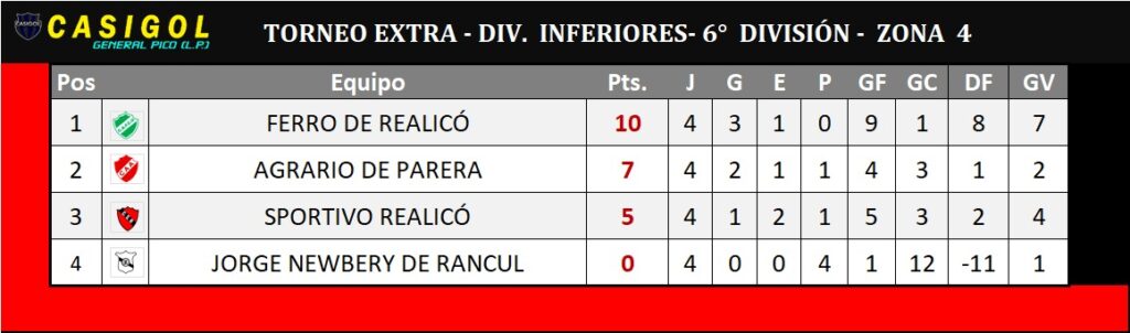 En la tarde de hoy se completó la cuarta fecha del torneo extra de divisiones inferiores, para las tres categorías que la componen.