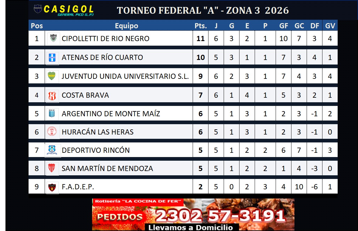 ATENAS DE RÍO CUARTO 3 vs. 1 DEPORTIVO RINCÓN