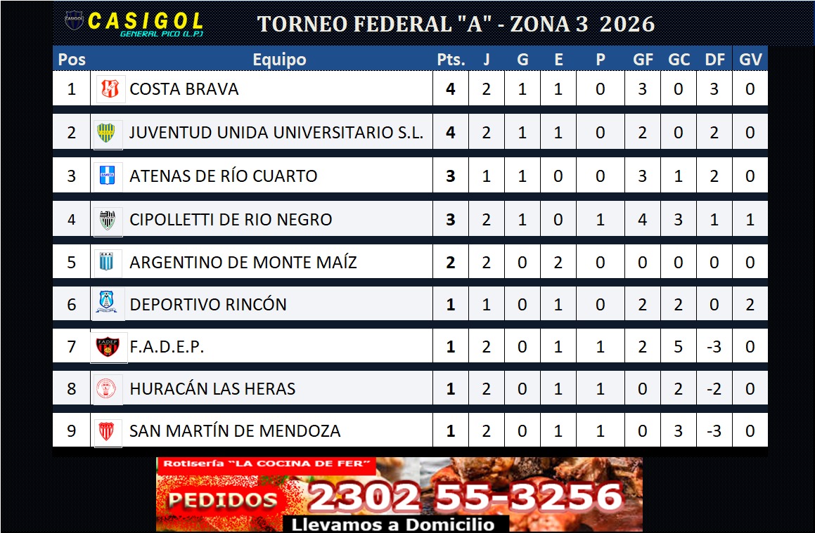 Hoy se completó la segunda fecha del Torneo Federal A de fútbol. Por la Zona 3, Costa Brava visitó a Argentino de Monte Maíz en el estadio “Modesto Marrone”.