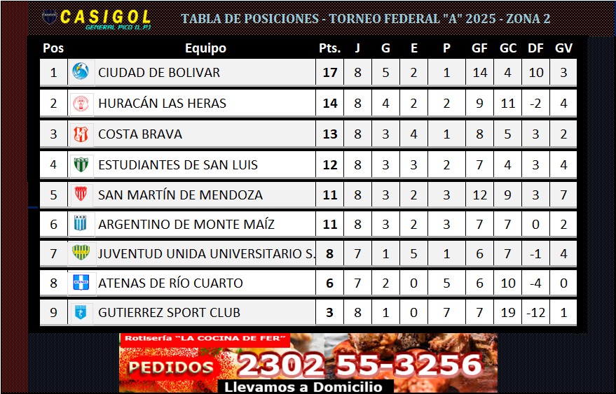 En la tarde de hoy, se disputaron los encuentros de la octava fecha del torneo Federal, última de la  primera rueda de la zona 2.