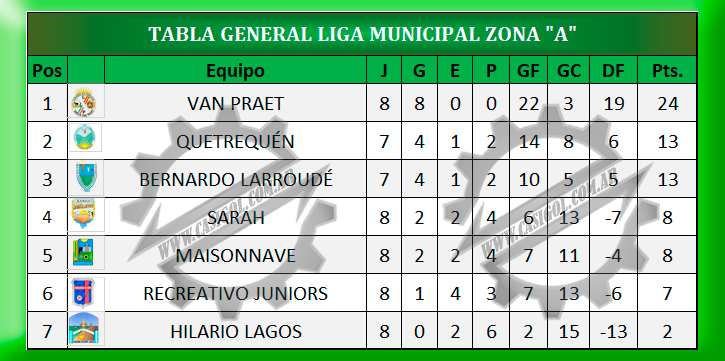 TABLA DE POSICIONES CLAUSURA ZONA A