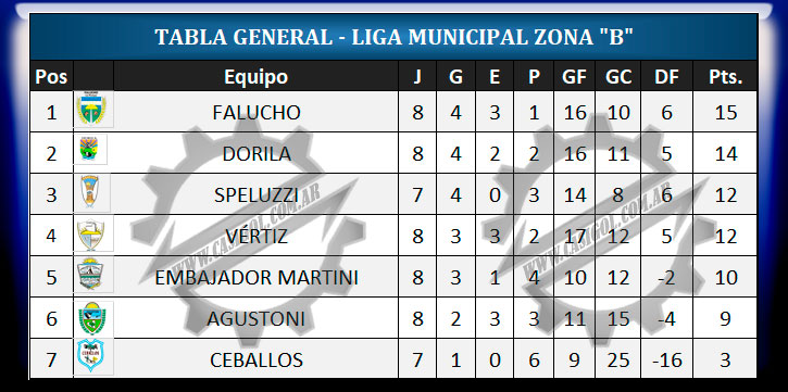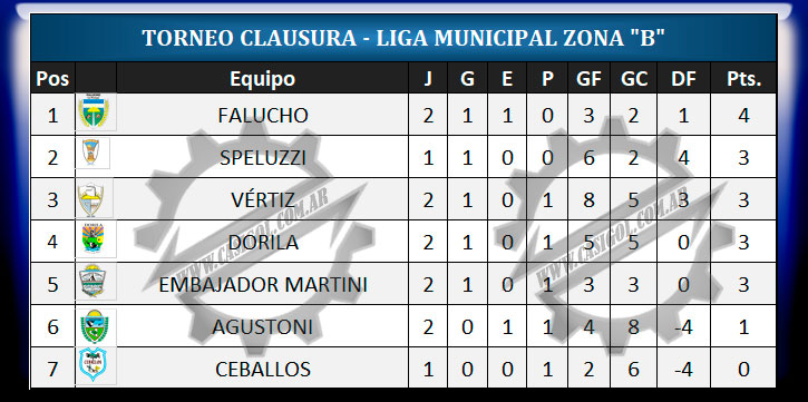 TABLA DE POSICIONES CLAUSURA ZONA B