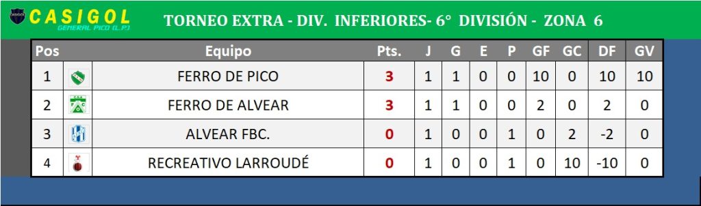 También se jugaron los partidos reprogramados que habían sido suspendidos por el mal estado del campo debido a la lluvia. Se trata de los encuentros de la primera fecha del clásico de la Zona 6 entre Ferro de Alvear y Alvear FBC.