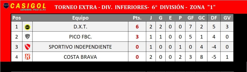 En la noche de hoy comenzó a disputarse la segunda fecha del Torneo Extra de Divisiones Inferiores, con los encuentros de la Zona 1 entre Costa Brava y DXT, correspondientes a las categorías Séptima, Sexta y Quinta División.