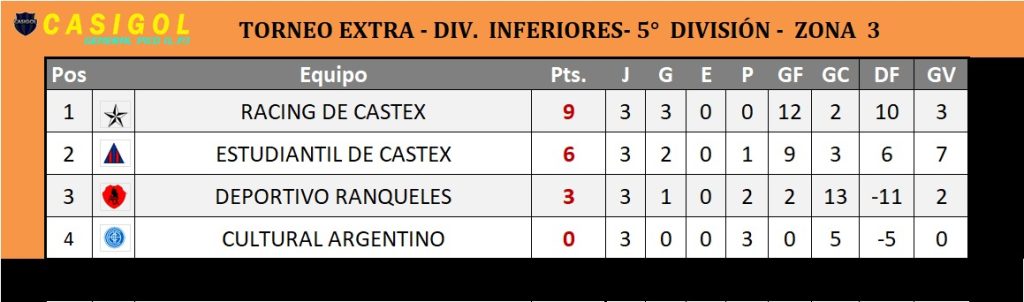 RACING DE CASTEX 3 vs. 3 DEPORTIVO RANQUELES