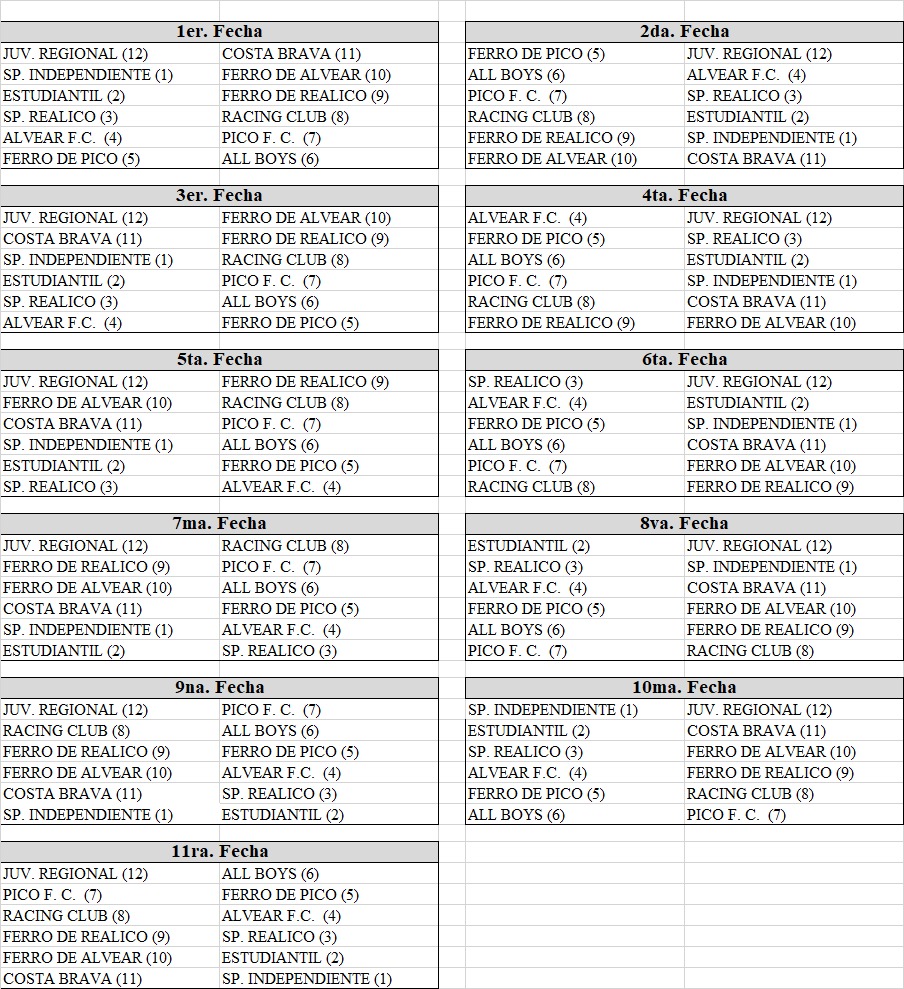 El fixture sorteado para esta temporada 2026 es el siguiente: