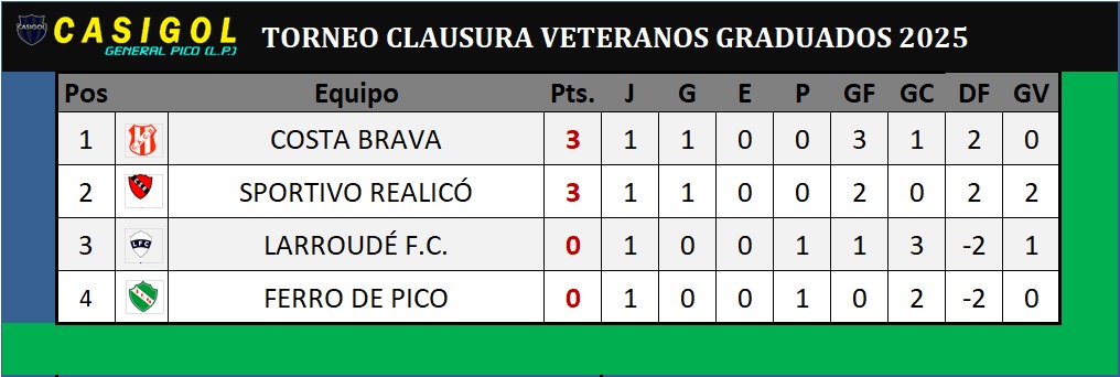 SE DISPUTÓ LA PRIMERA FECHA DEL TORNEO CLAUSURA DE VETERANOS EN CATEGORÍA GRADUADOS