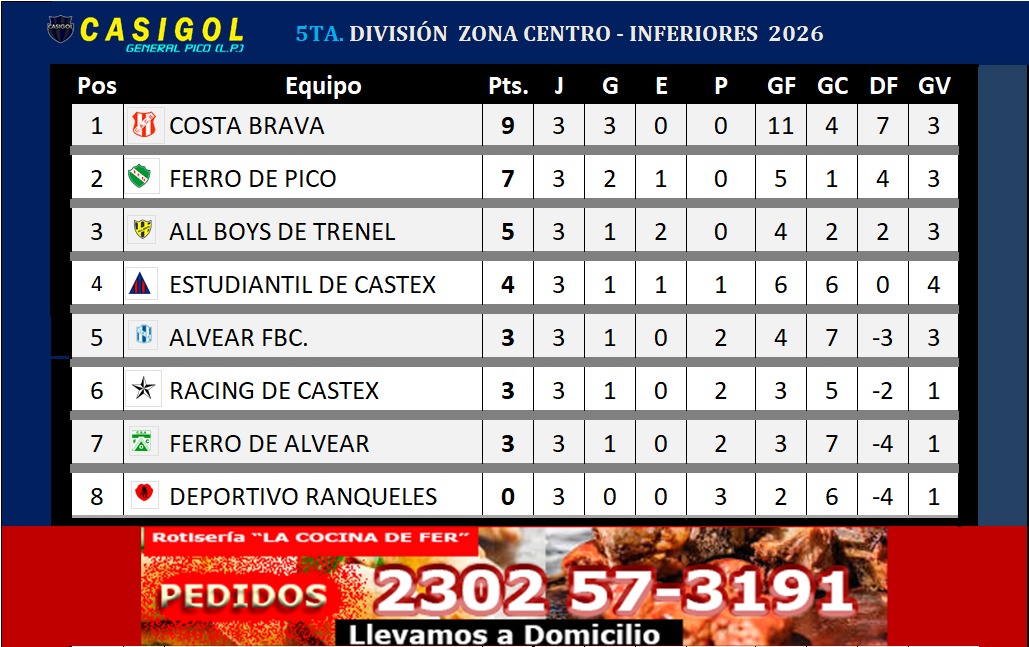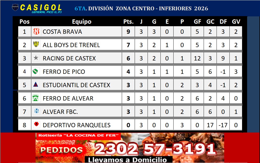 COSTA BRAVA 1  vs.  6  ESTUDIANTIL DE CASTEX