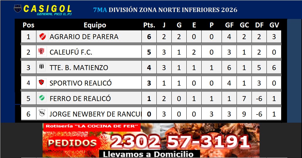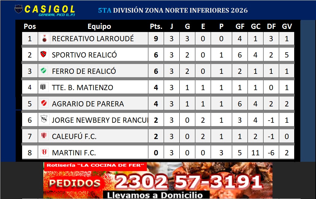 SPORTIVO REALICÓ  4  vs.   1    JORGE NEWBERY DE RANCUL.