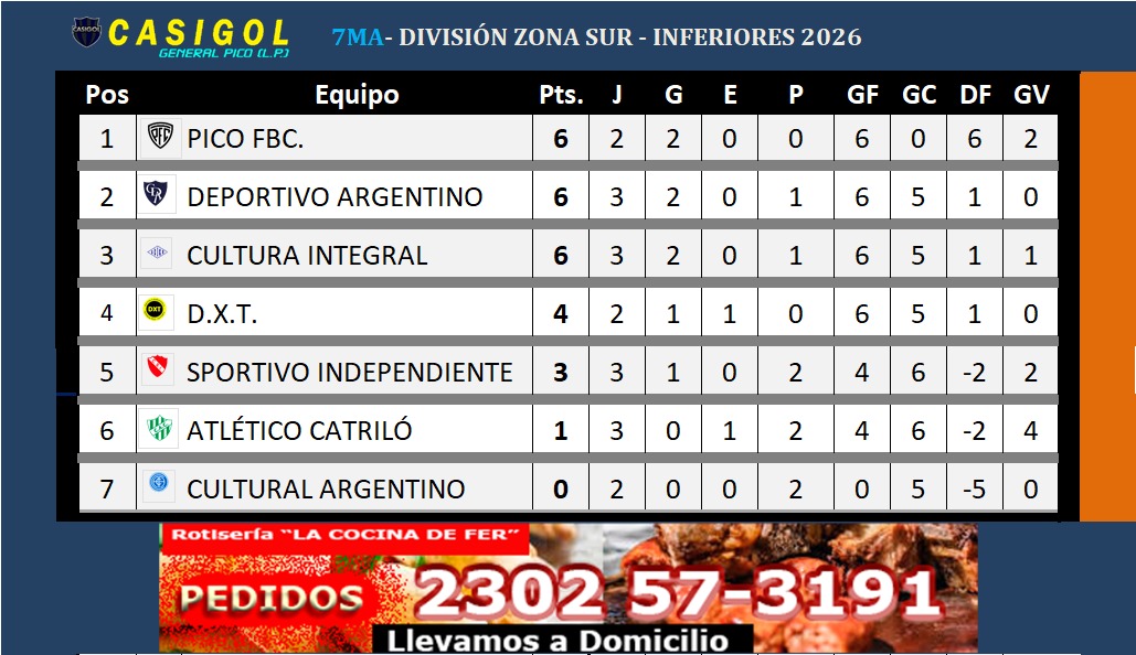 DEPORTIVO ARGENTINO  6  vs.  2  ATLÉTICO CATRILÓ