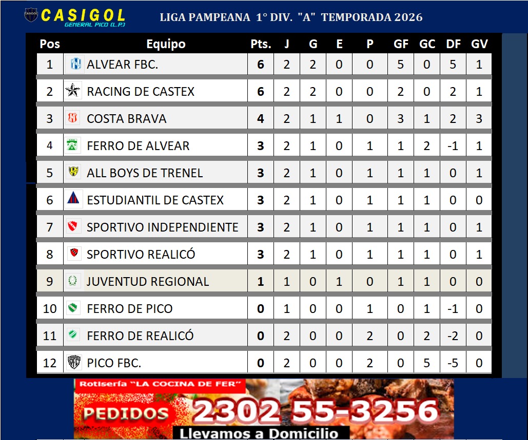 Sportivo Independiente se impuso en Parera ante Ferro de Realicó, mientras que Costa Brava, sobre la hora, venció en Intendente Alvear a Ferro por 2 a 0, con dos de Roldán.