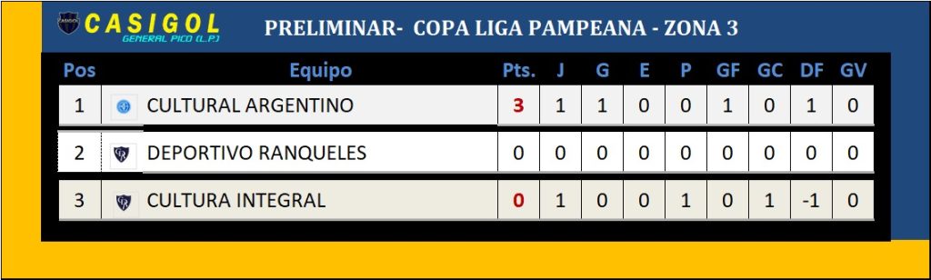 Hoy Cultura Integral ganó en el "Volcán" Ferro de Realicó lo hizo en Larroudé , Caleufú se llevó los tres puntos del "Coloso" y Agrario igualó con Sportivo Realicó.