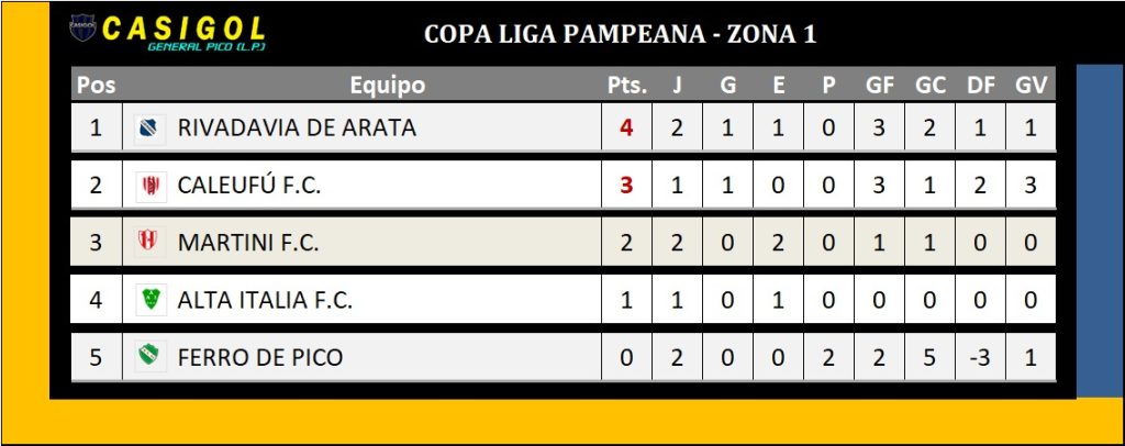 Falta jugarse Martini FC. y Rivadavia de Arata.