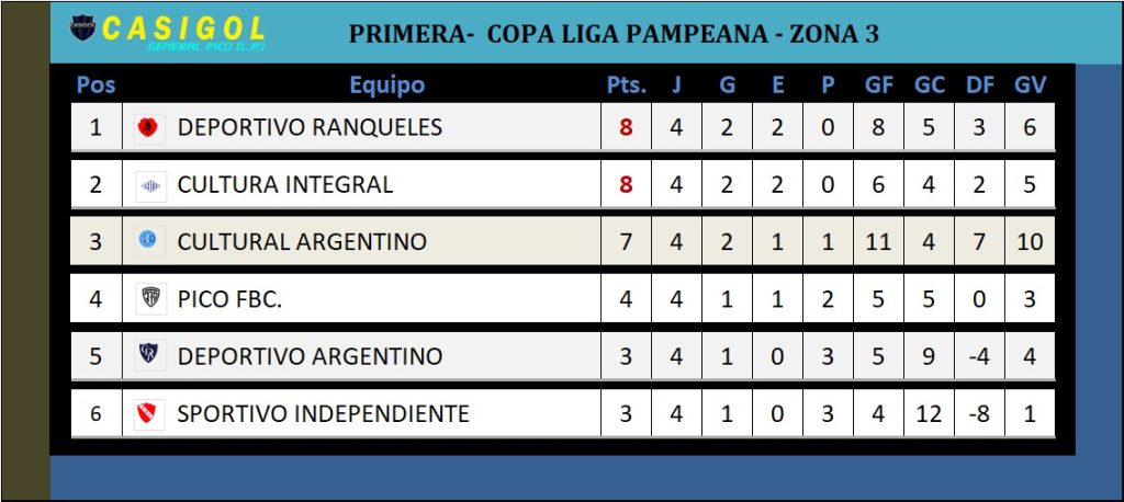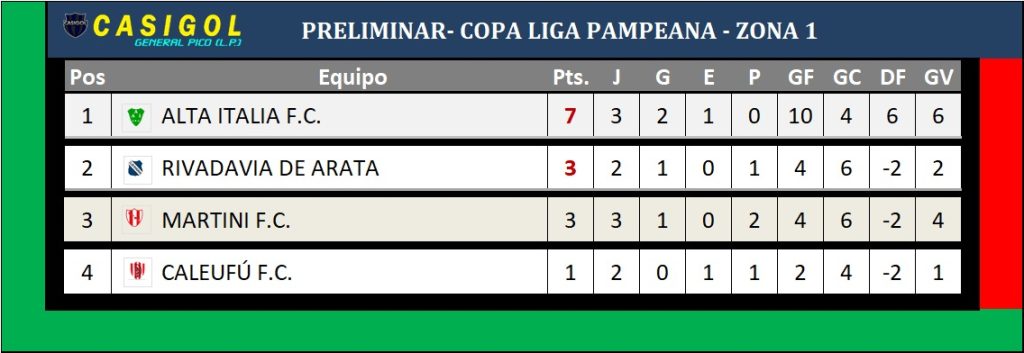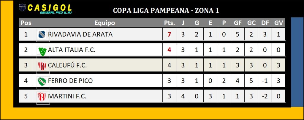 En la noche de hoy se completó la cuarta fecha de Copa Liga Pampeana. Por la misma se disputan siete partidos correspondientes a las tres zonas y así quedó la síntesis disputados los partidos de la cuarta fecha Completan esta noche a las 20:00hs. por la zona 1, Martini FC. y Ferro de Pico y Alta Italia Caleufú FC.