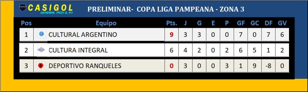 Ganaron Pico FBC.,  Cultural Argentino y Cultura Intgral por la zona 3,  empataron en Rancul Jorge Newbery y Sportivo Realicó, y en último turneo Martino FC. venció 1 a 0 a Caleufú FC.  con el gol de Juan Pablo Garro.