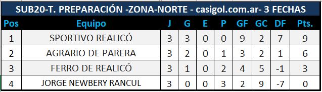 Por categoría sub20 por el torneo preparación se jugaron dos partidos por la zona norte y se completó la tercera fecha. Por la zona centro recién habrá actividad la próxima fecha cuando se enfrenten Sp. Independiente y Pico FBC en el clásico.