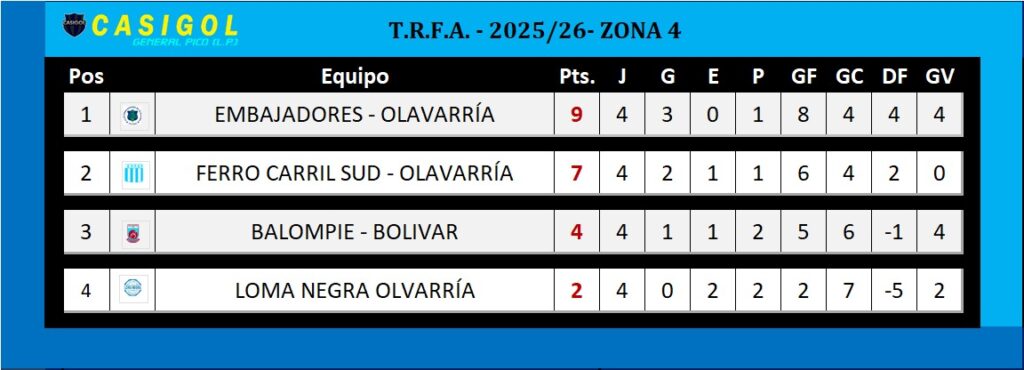 TRFA: SÍNTESIS DE LA CUARTA FECHA EN LAS 9 ZONAS DE LA REGIÓN BONAERENSE PAMPEANA SUR