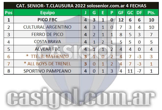 En el día de hoy en canchas del Deportivo Ranqueles, Sportivo Independiente, Country Arco Iris (cancha 1), Caleufú FC y en el Municipal de Vértiz se disputó la cuarta fecha para las categorías senior, maxi y super, tercera para Master y Graduados.